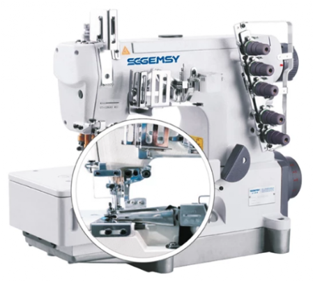 3 tűs, 5 szálas fedőzőgép lapos rolnizó aparátos kivitelű. A gép energiahatékony meghajtási rendszerrel van felszerelve – közvetlen hajtás – AC szervo (beleértve a tűpozícionálás opció). Különböző rolni szalagok szép és gyors szegésére speciálisan kialakítva a standard változat beépített energiatakarékos LED világítást is tartalmaz. A QR-kód minden gépen kényelmes és azonnali hozzáférést biztosít az utasításokhoz és az alkatrészkatalógushoz bármikor (csak internet-hozzáféréssel rendelkező okostelefon szükséges) anélkül, hogy műszaki dokumentációt kellene keresni.