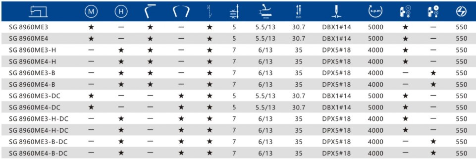 Integrált automatikus szálvágós huroköltéses varrógép gyorsvarrógépAutomatikus funkciók: szálvágás, kezdet és vég elerősítés, szál feszesség, automatikus nyomótalp emelő funkcióval.Nagyon csendes működés, zárt rendszerű központi olajozással, beépített energia takarékos szervo motorral, LED világítással