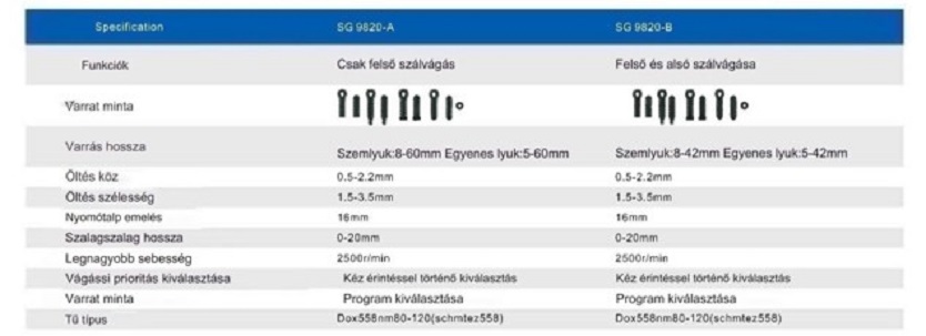 Programozható, fejbe épített energiatakarékos szervo motor, szálvágás, központi olajozás,